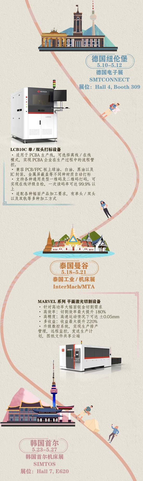 五月,華工激光帶你環球游~多場海外金屬加工、3C電子等行業展會,有才有料的明星產品和系列解決方案show給你看!